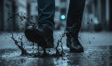 A ideia é de alguém em pé sobre um piso liso, instável, inclinado. Pode parecer firme por um momento. Pode até dar a impressão de segurança. Mas basta um passo em falso para a queda acontecer.